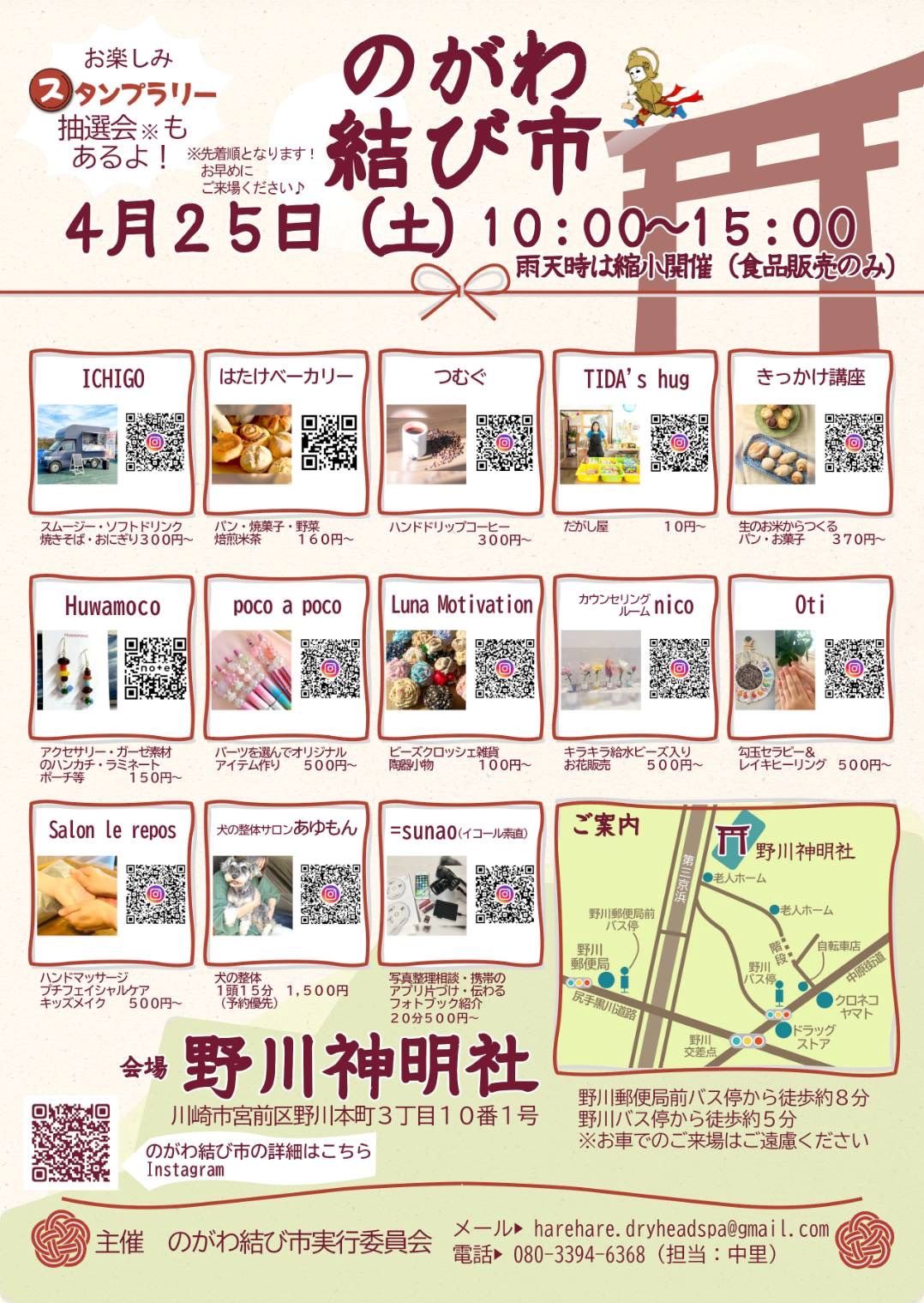 | 2026年3月30日 | 第2回目の神社マルシェ(のがわ結び市)が、4月25日(土)に開催されます。 |
